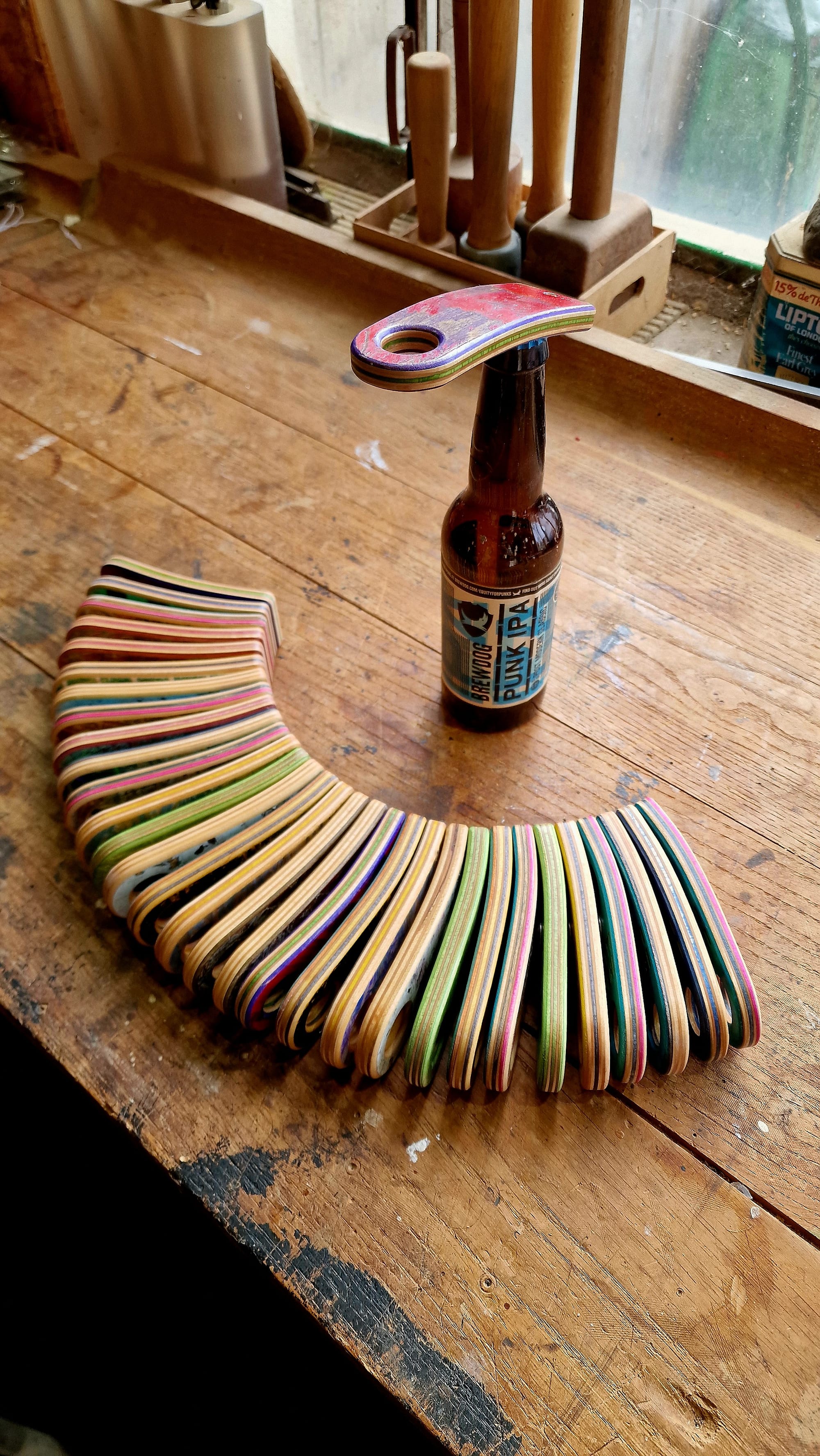 Maxime Delongvert travaille le bois sous toutes ses formes depuis 1999, ne se limitant pas seulement au mobilier, il est également un spécialiste du son.